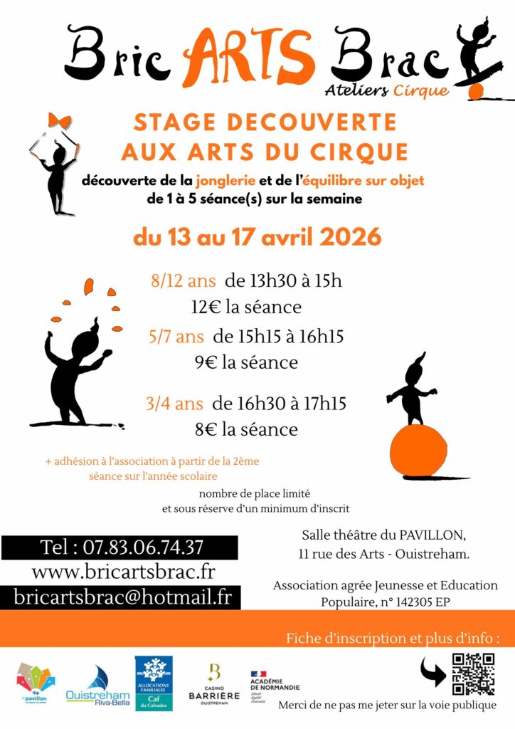 Nous organisons sur Ouistreham des stages pendant les vacances scolaires .Les objectifs sont la découverte et l’initiation aux arts du cirque, pour ceux qui ont déjà participé à un ou plusieurs stages un approfondissement sur chaque technique leur est proposé.